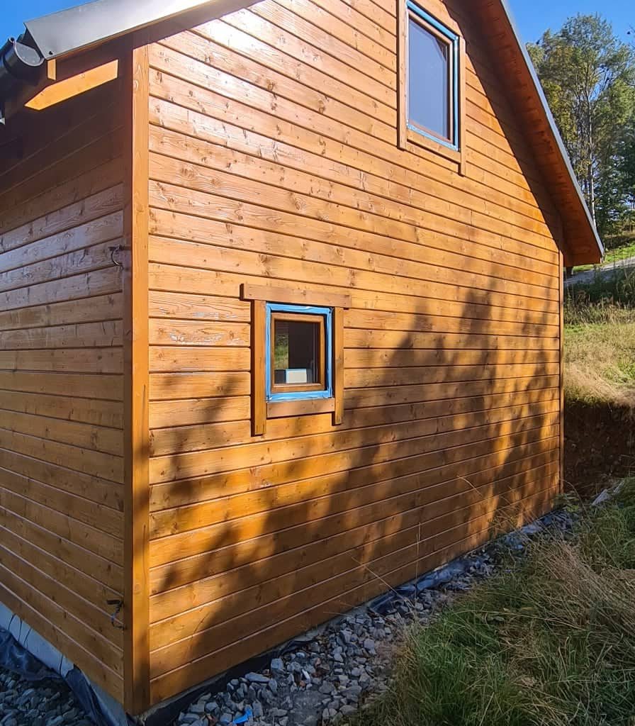 Dodatkowe informacje: Ocieplenie - Wełna mineralna, okucia rynnowe, prąd, wykończenie wewnętrzne - boazeria, lakierowanie zewnętrzne = impregnat hybrydowy - Lakierobejca Sadolin