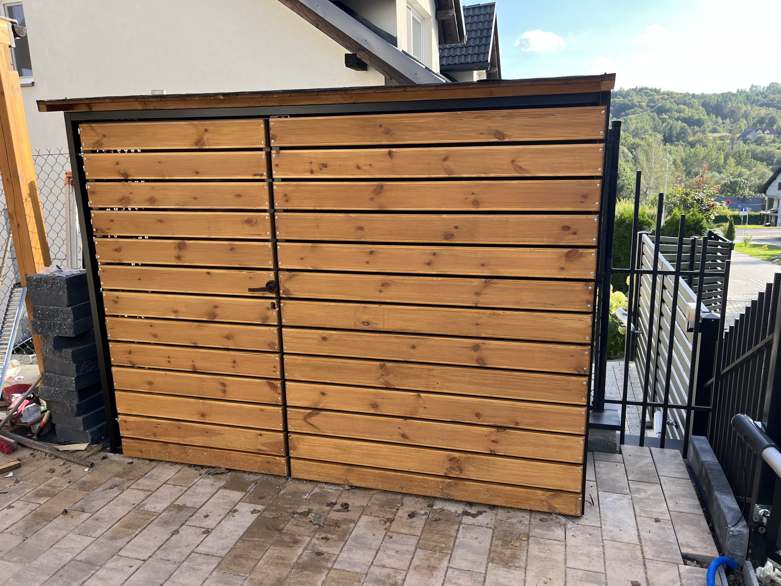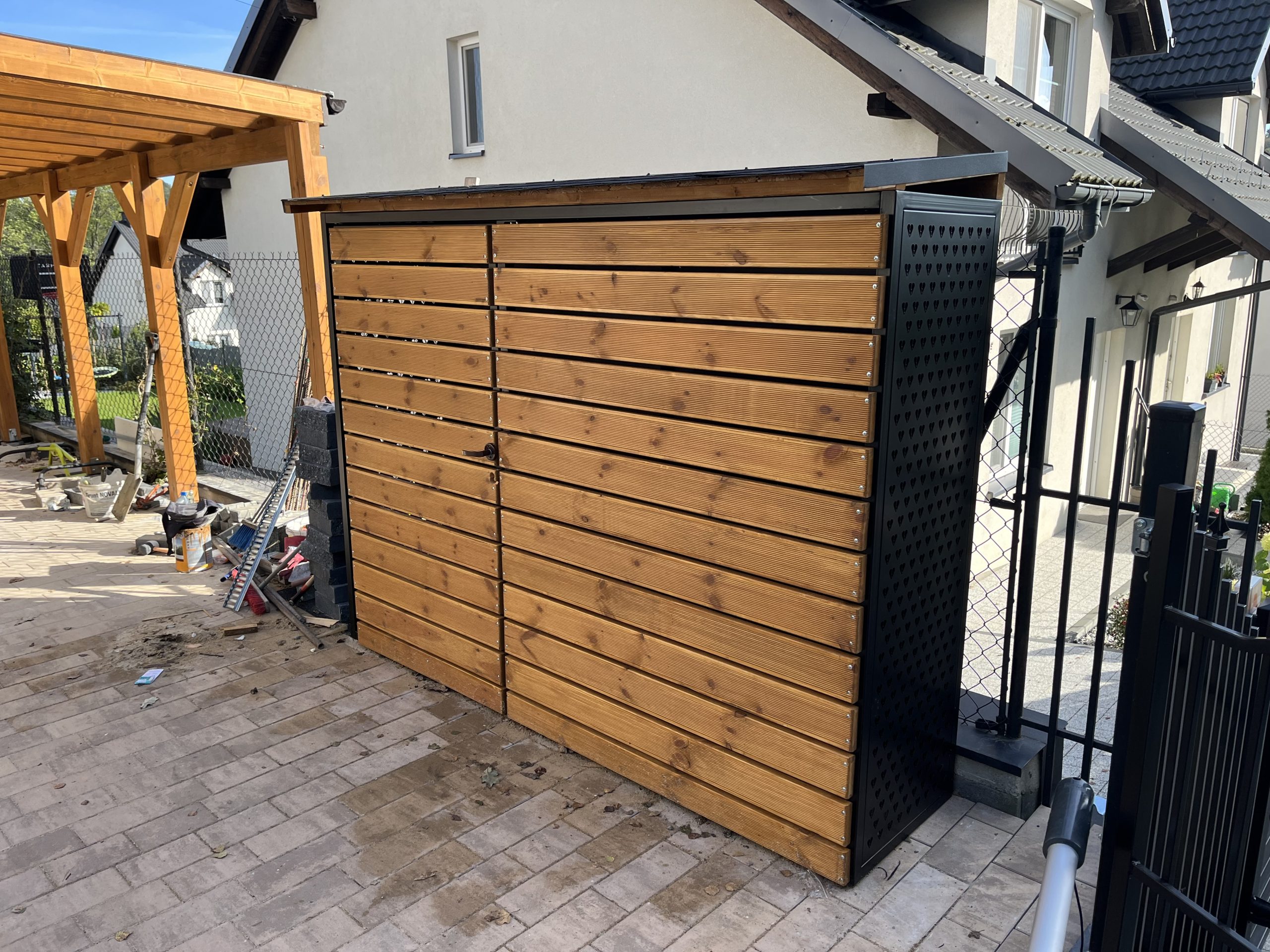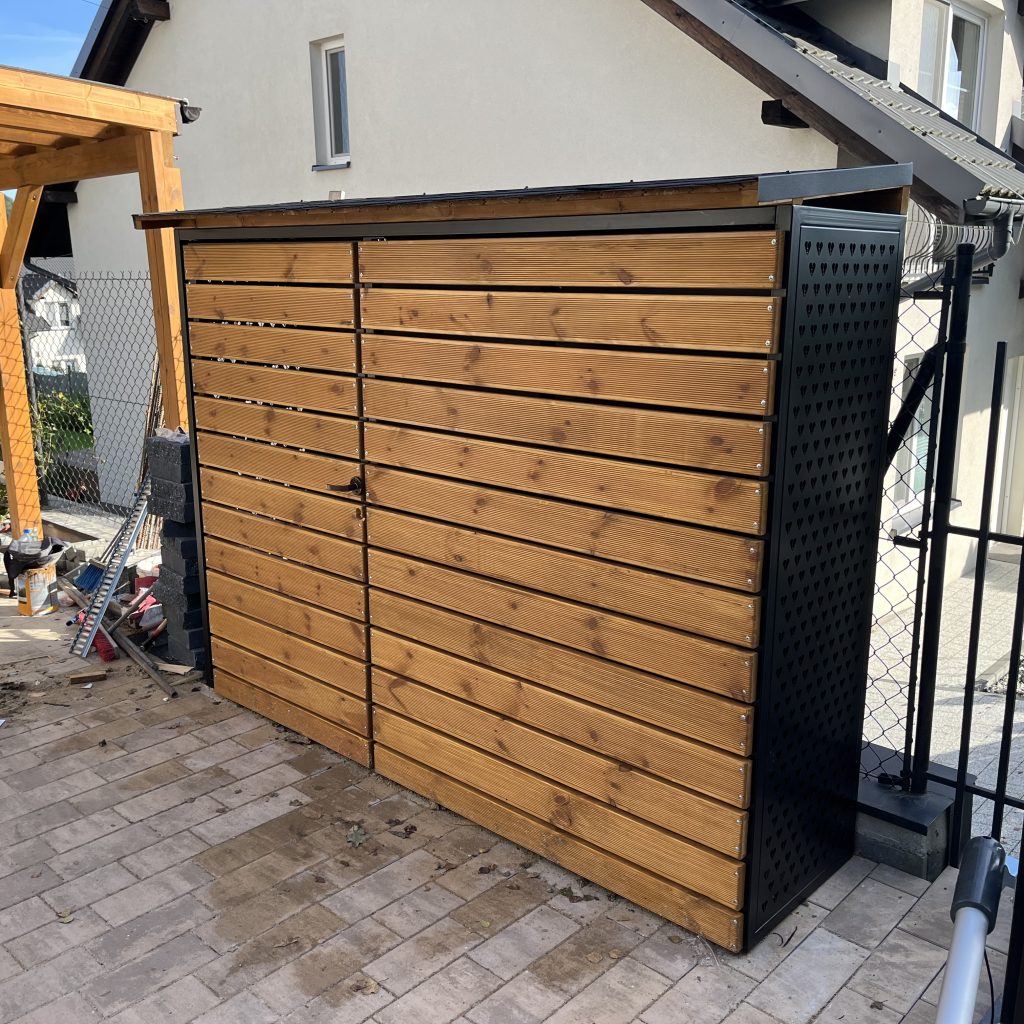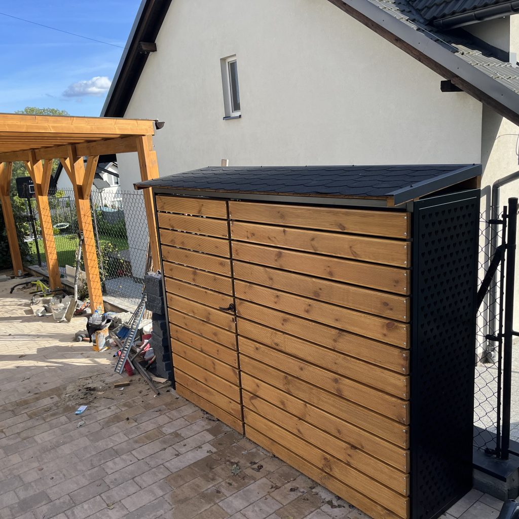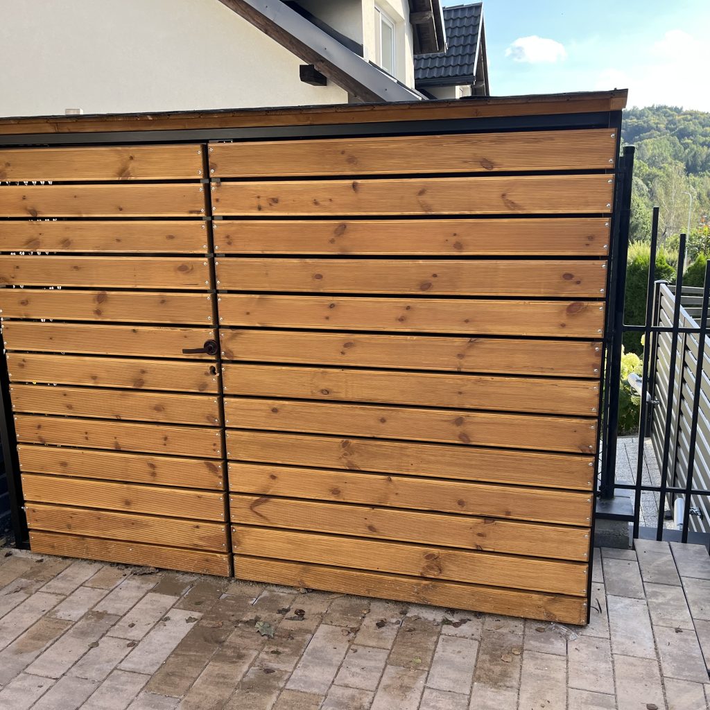 Dodatkowe informacje: Boki drewutni wykonane ze stali nierdzewnej + zdobienia, deska modrzew europejski