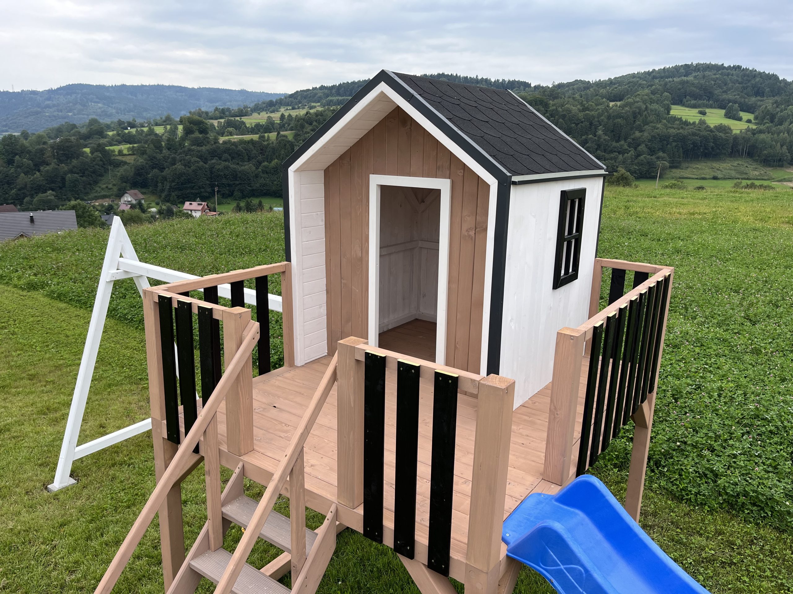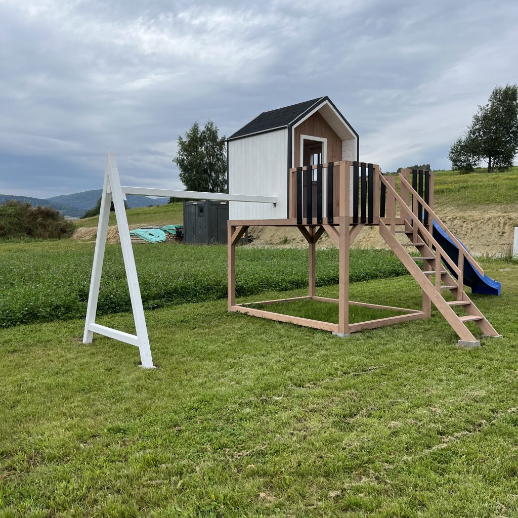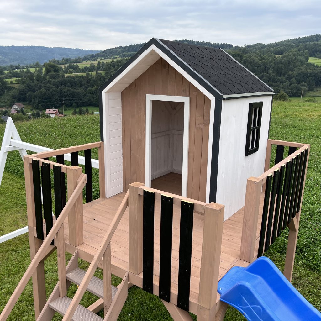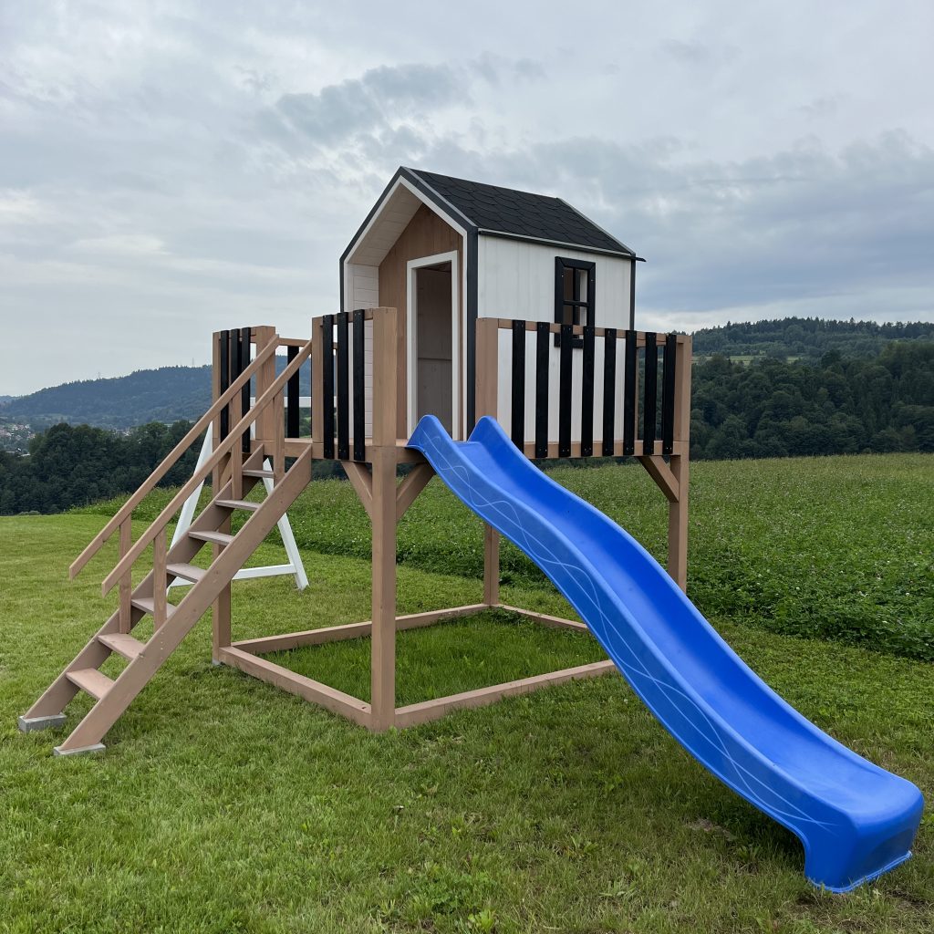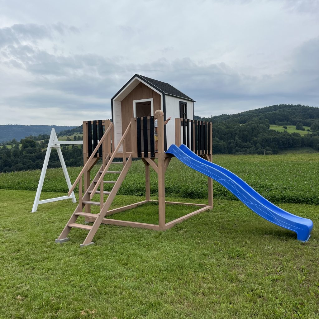 Dodatkowe informacje: W zestawie piaskownia, zjeżdżalnia, huśtawki, telefon zabawka, luneta, kierownica, skrzynka na listy (możliwość wyboru)