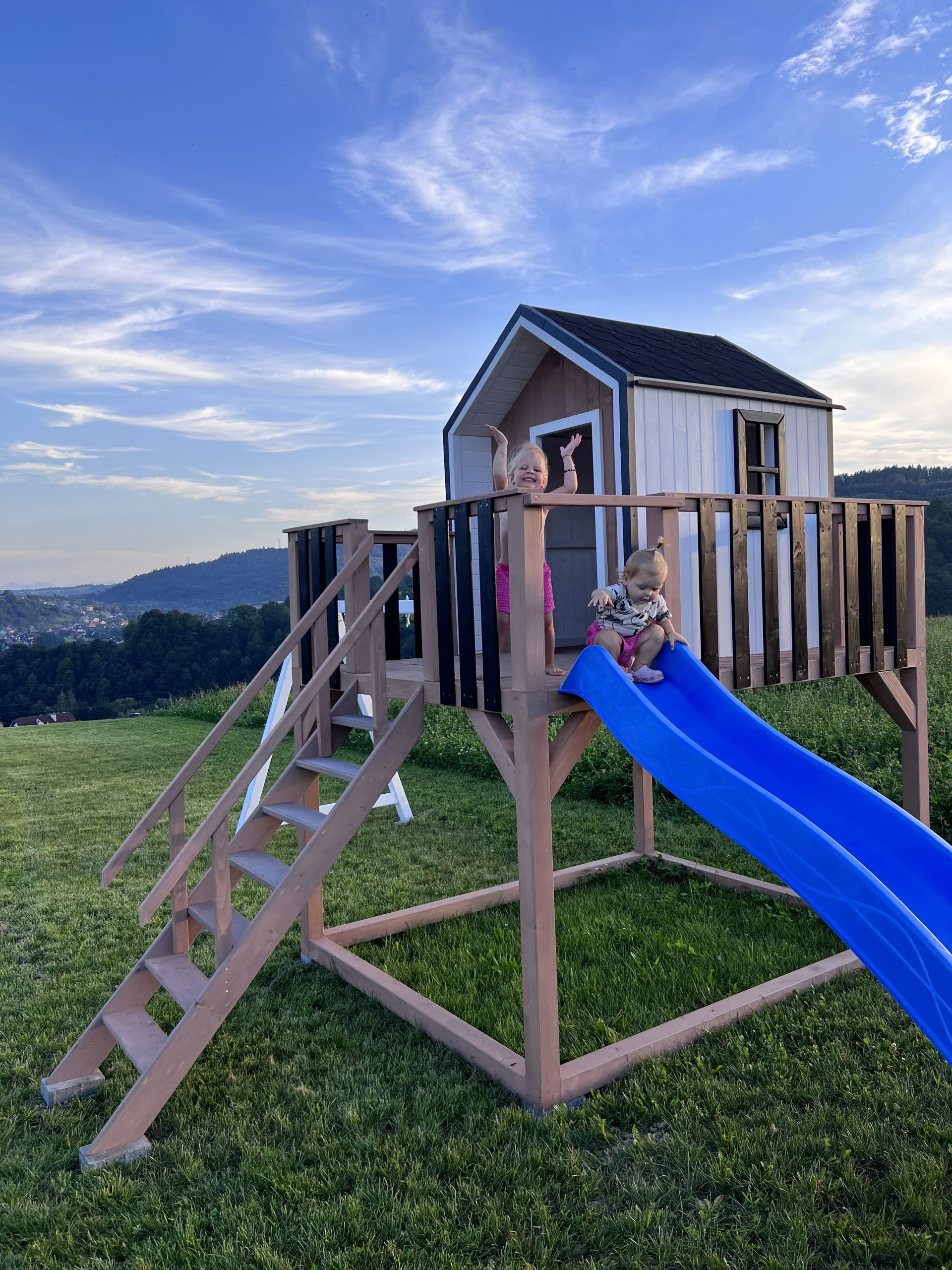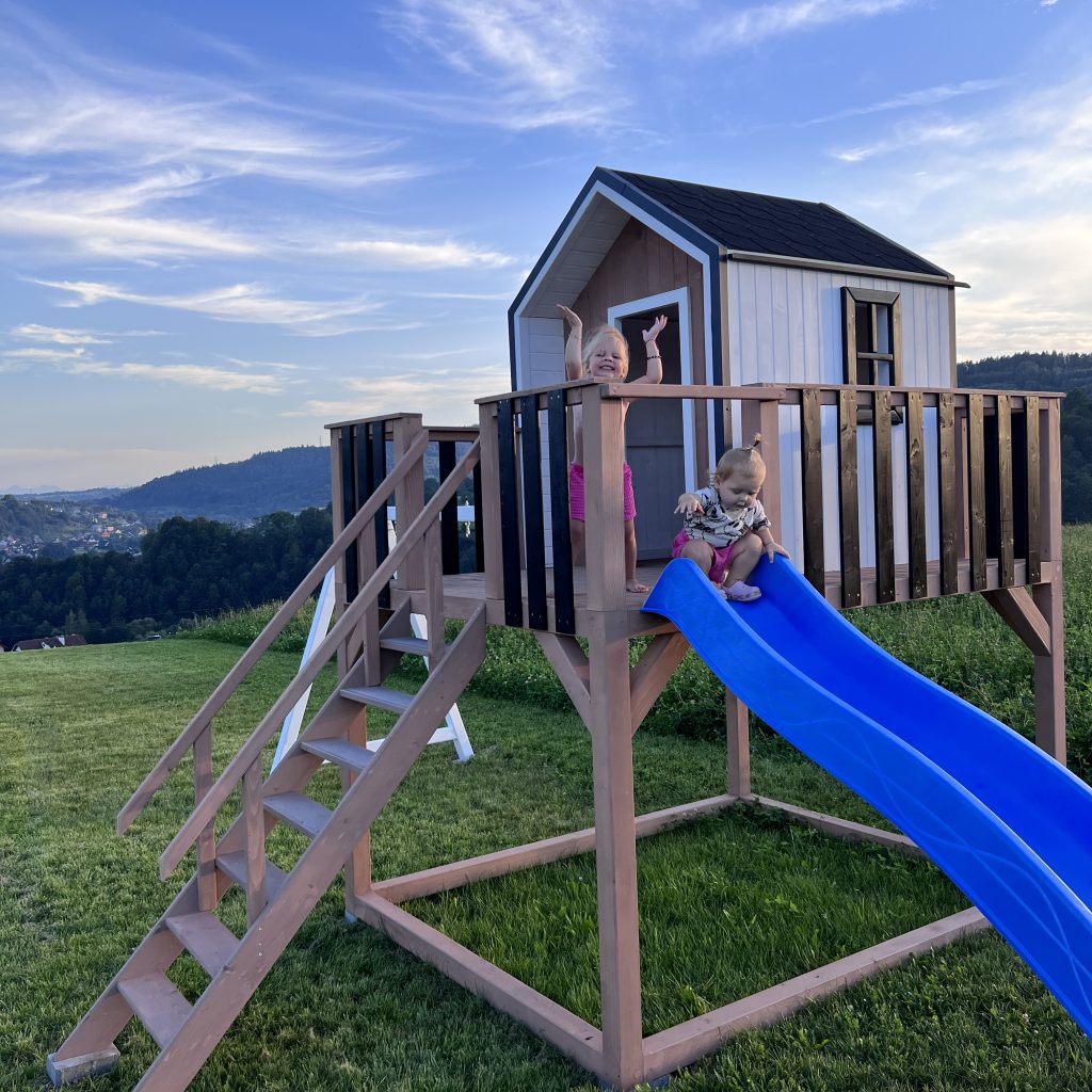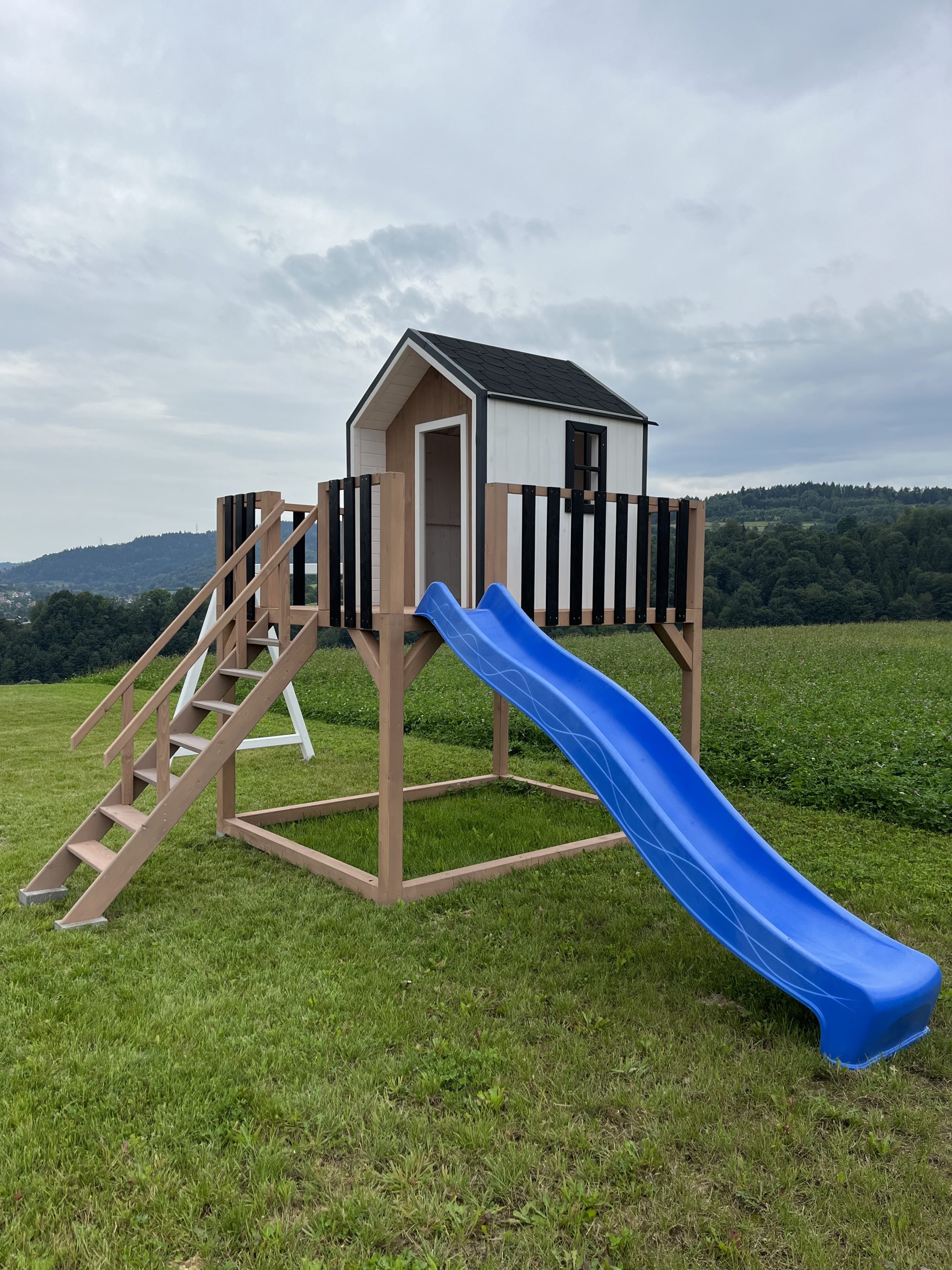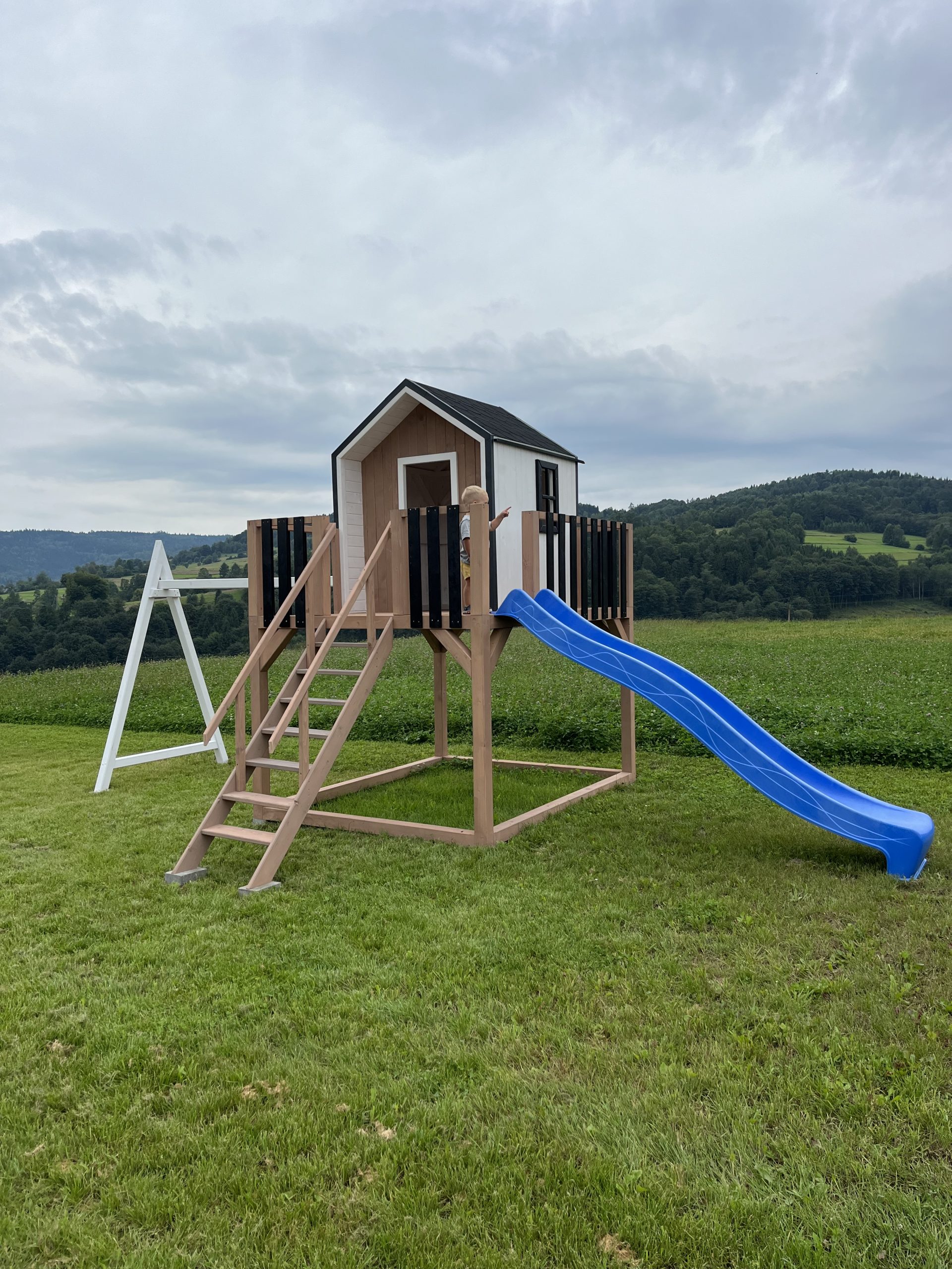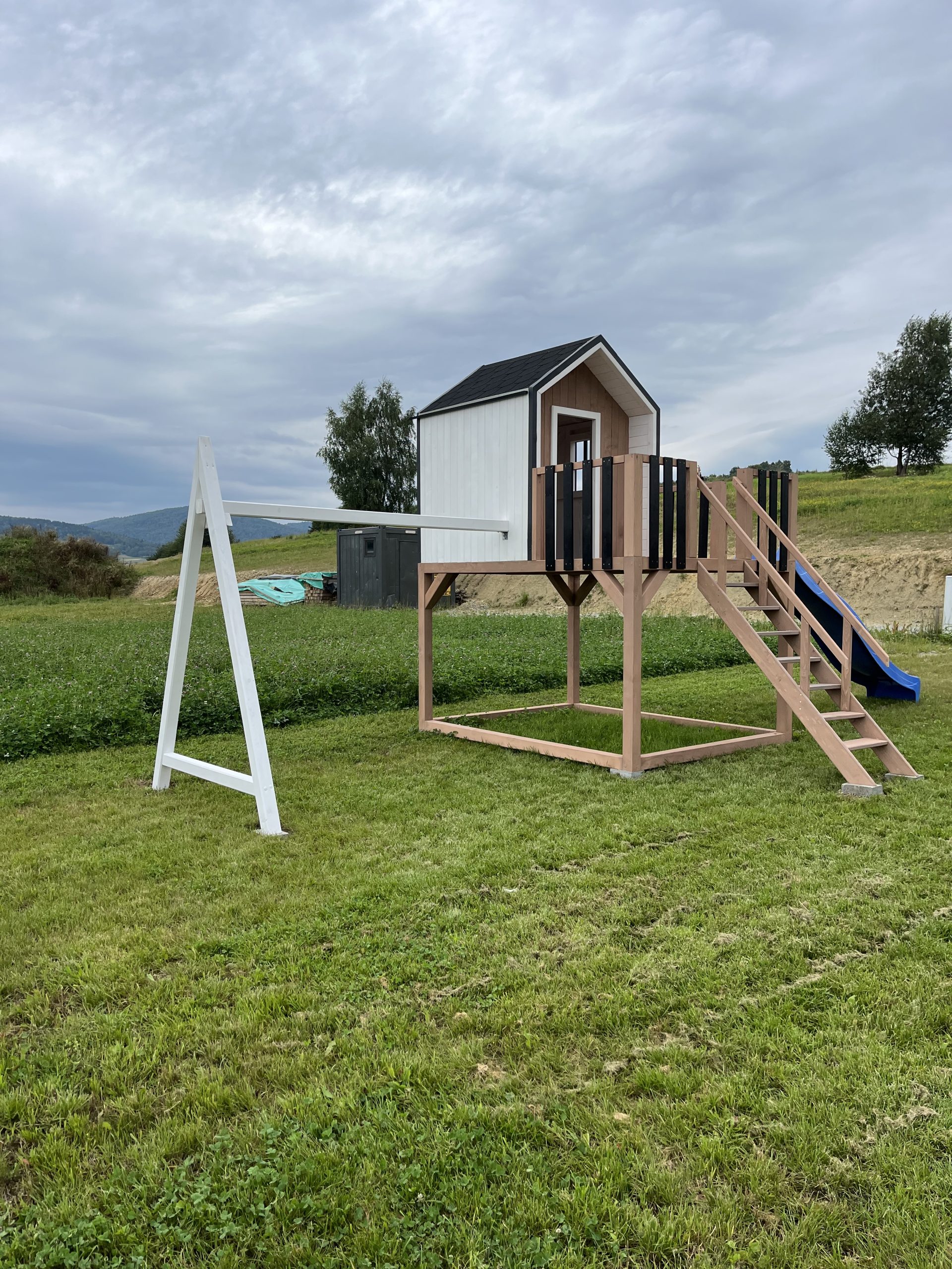 Dodatkowe informacje: W zestawie piaskownia, zjeżdżalnia, huśtawki, telefon zabawka, luneta, kierownica, skrzynka na listy (możliwość wyboru)